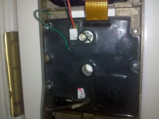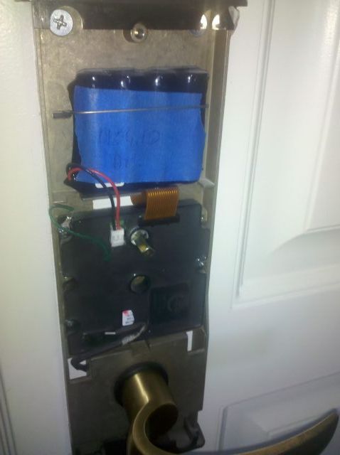 Anyway, the electronic door lock on my room was hosed. The hotel maintenance guy ended up replacing it. I had some work to do so I could handle the half an hour wait in my room. In addition to getting some work done, I grabbed a few pics of the inside of one of these.