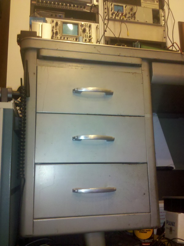 Yet, their product is nearly as good as the claim. I’ve got a couple in the lab. Big, ugly, heavy desks, government surplus, doubling as workbenches. May I introduce you, my friends, to the “Invincible Metal Furniture Company“.